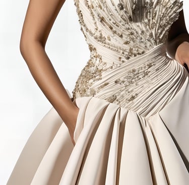 Avec les tissus choisis, nos couturières expérimentées commencent la création de votre robe. Chaque pièce est confectionnée avec soin et précision, alliant techniques artisanales et technologies de pointe pour garantir un résultat d’exception.